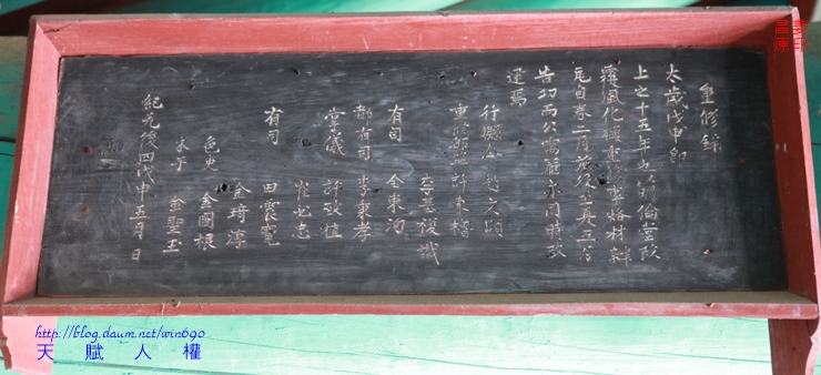 추모하는 마음 이길 수 없어서 판에 새겨 들보에 걸고 오래 전하고자 한다.