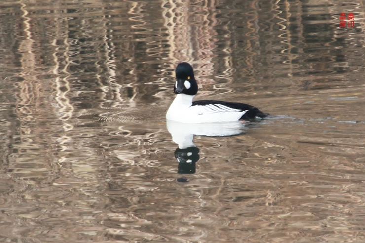 창원천의 하류 지역은 기수지역이라 다양한 철새들이 날아오는 곳이다. 2021년 설날 아침 만조가 지나는 시간에 창원천 하류 쪽으로 가보니 홀로 유유히 먹이사냥을 하고 있는 특색있는 흰뺨오리(Bucephala clangula) 숫컷을 보았다. 접근하여 사진을 찍으려 하니 잽싸게 먼곳으로 도망을 간다.