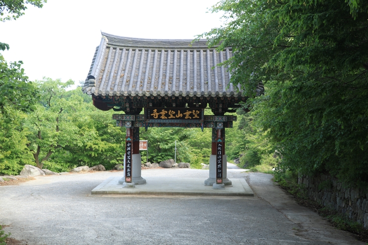 불이문을 지나 너들강을 건너면 주차장이 나오는데 이곳에 돌일주문이 암반위에 세워져 있다. 돌일주문의 패에는 만자卍字를 양쪽에 새기고 망운암望雲庵이라 이름했으며 돌문루 위에는 태극 문양을 넣고 뒤쪽에는 연꽃으로 보이는 꽃을 새겼다. 기둥의 전면 좌측에는 건설 연도를 적어 두었는데 읽어 보지 못했다.