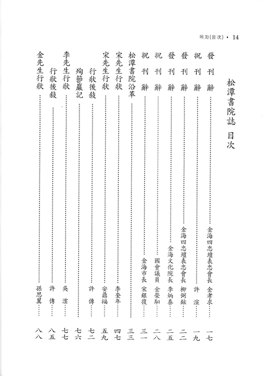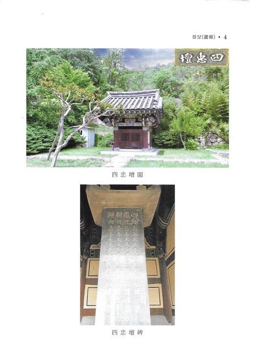 권두에 송담서원松潭書院 전경, 사충단각四忠壇閣, 표충사表忠祠, 동재인 숭덕재崇德齋, 서재인 명의재明義齋, 외삼문인 경앙문景仰門 등의 사진을 실었고 사충신四忠臣의 교지가 있다. 목차에 이어 2018년 김효구金孝求 회장의 발간사와 허선許渲 원장의 축간사, 사충단표충회장 류필현柳弼鉉, 김해문화원장 이병태李炳泰의 발간사와 국회의원 김영일金榮馹, 시장 송은복松銀復의 축간사를 부치고 말미에 (사)경남향토사학회 송춘복의 편집후기가 있다.