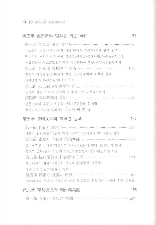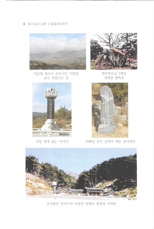 문태서文泰瑞(1880~1913)는 자이고, 이름은 태진泰珍이며, 호는 의재義齋, 태수泰洙, 태서泰西, 등 16개의 별명을 가지고 있었다. 유독 항쟁 기간이 길었지만 겸손함으로 인해 이름이 드러나지 않고 숨겨져 있었던 그의 업적을 이 책에서는 유감없이 드러내어 알리고 있다.