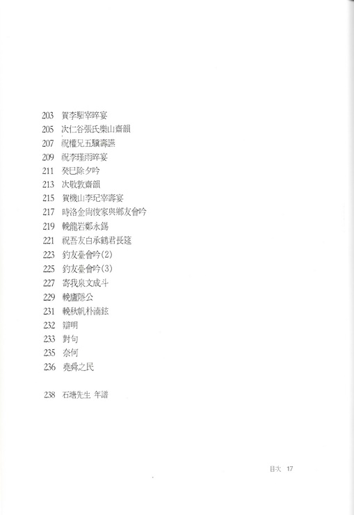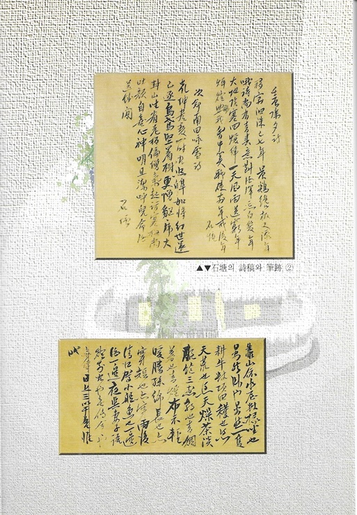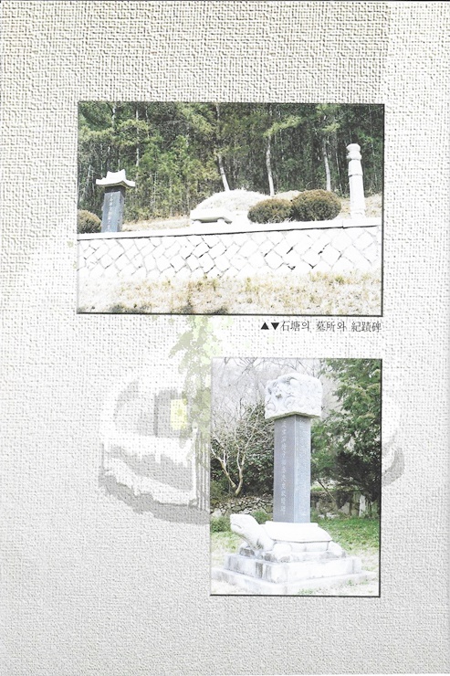 권두에 석당石塘과 부인의 사진, 석당石塘이 쓴 시의 필적과 묘소, 기념비의 사진을 실었고, 초암草菴이 서문을 부치고 말미에 석당선생石塘先生 년보를 부쳤다.