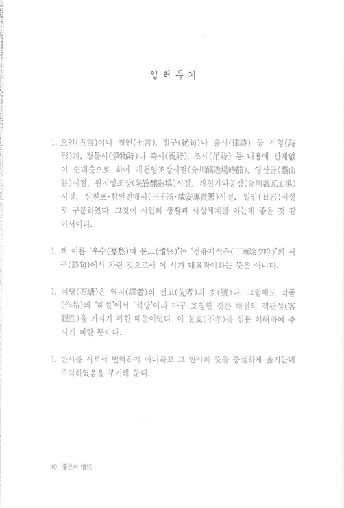 『憂愁와 憤怒』는 독립운동가 석당石塘 변상태卞相泰(1889~1963)의 한시漢詩를 모아 아들 초암草菴 변지섭卞志燮(1926~1999)이 번역하고 정리한 것을 정소순이 발행했고, 도서출판 경남에서 간행했다.
