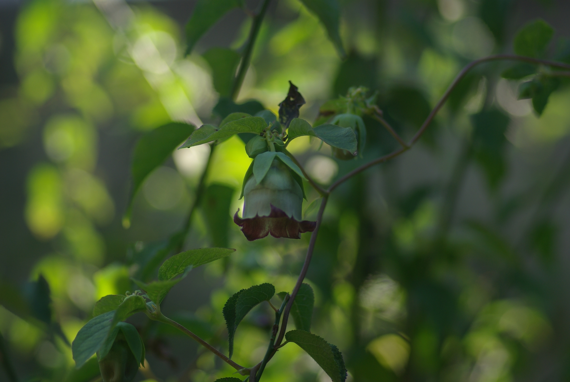 꽃은 7-9월에 피고 짧은 가지 끝에 밑을 향해 달리며 꽃받침은 5개로 갈라지고 열편은 난상 긴 타원형이며 길이 2-2.5cm, 나비 6-10mm로서 끝이 뾰족하고 녹색이다.