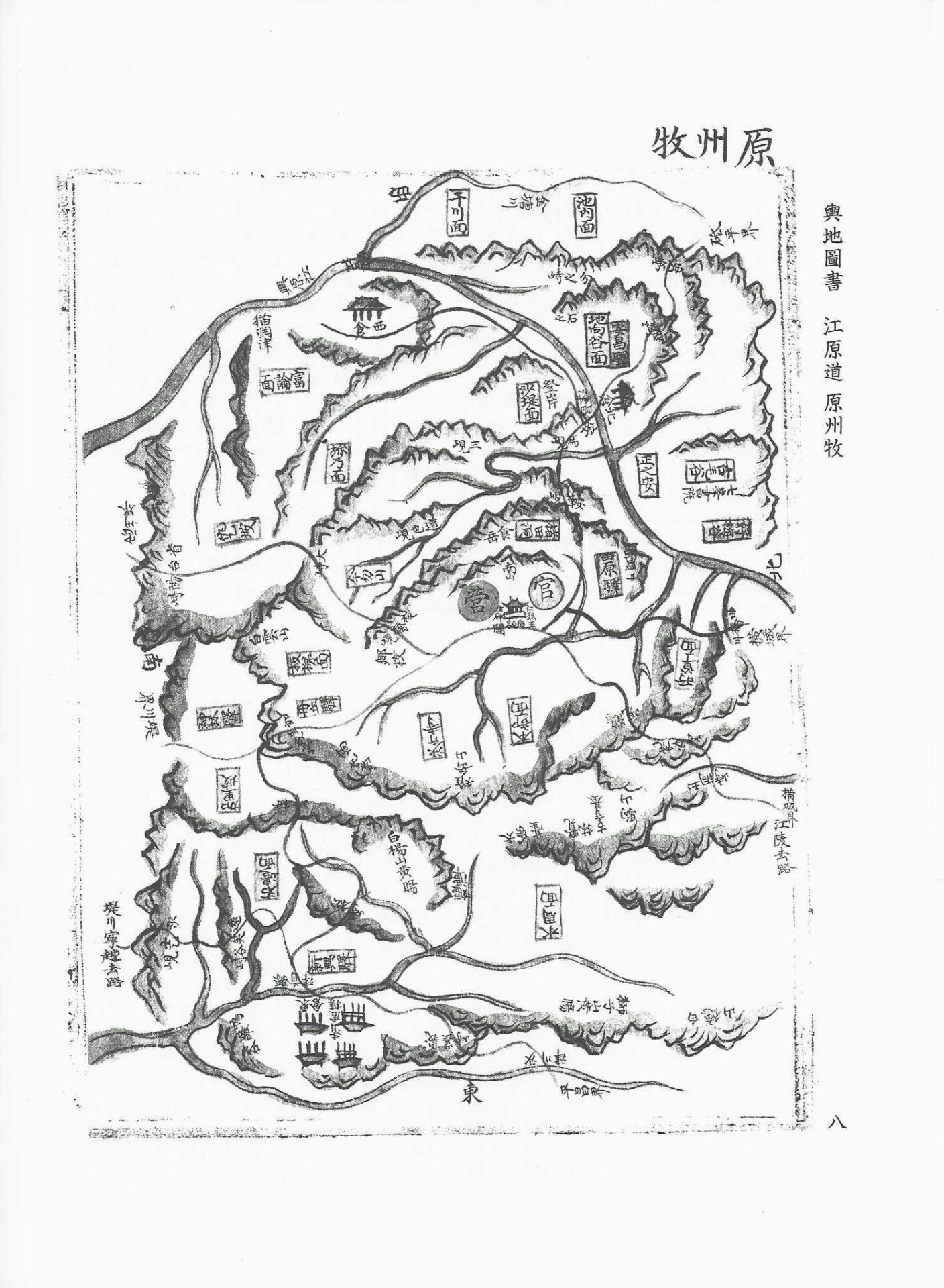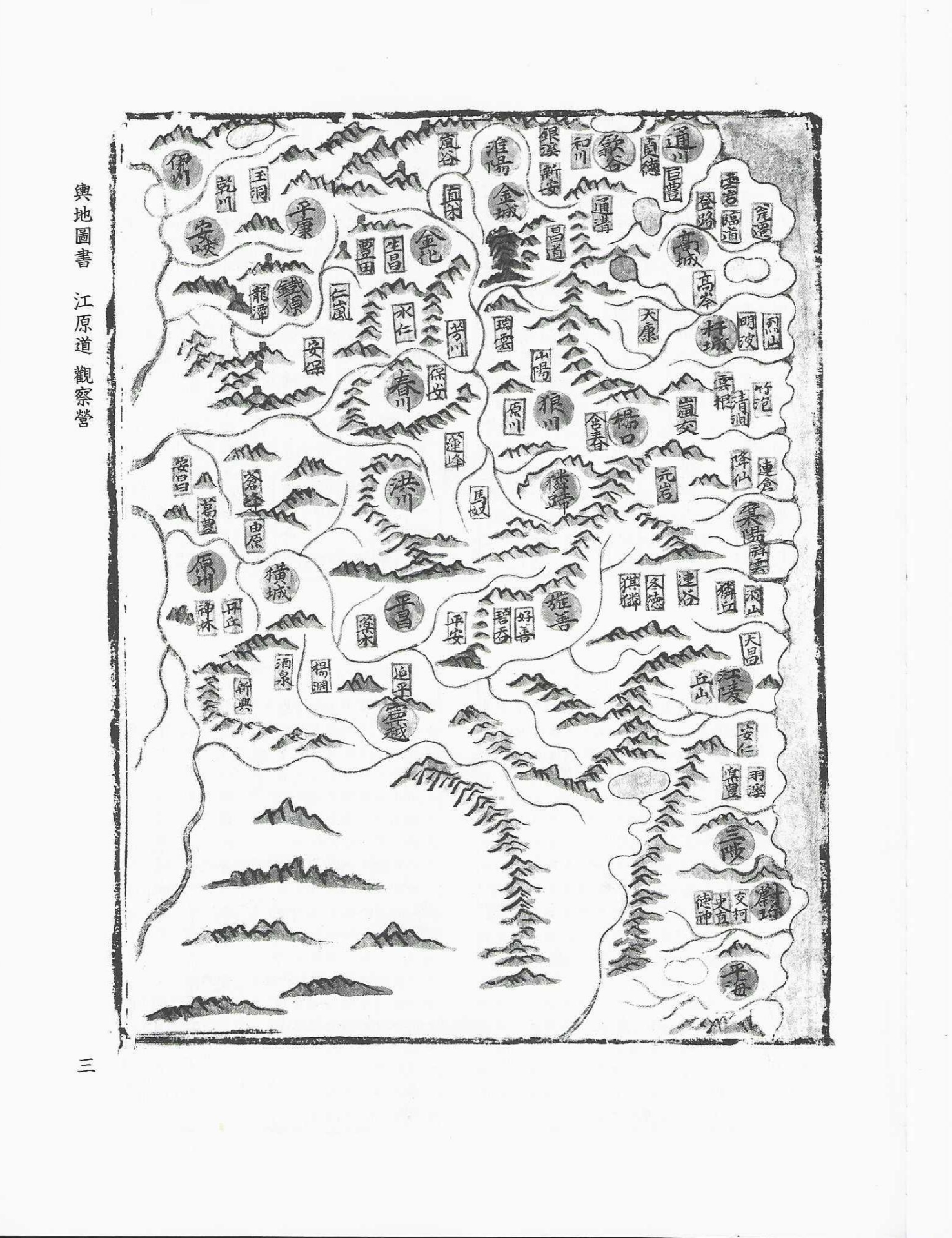 春川縣(춘천현), 旌善郡(정선군), 寧越府(영월부), 平昌郡(평창군), 洪川縣(홍천현), 麟蹄縣(인제현), 淮陽府(회양부), 鐵原府(철원부), 楊口縣(양구현), 狼川縣(낭천현), 金城縣(금성현), 金化縣(금화현), 伊川縣(이천현), 安峽縣(안협현), 平康縣(평강현), 江陵府(강릉부), 三陟府(삼척부), 襄陽府(양양부), 平海郡(평해군), 杆城郡(간성군), 高城郡(고성군), 通川郡(통천군), 蔚珍縣(울진현), 歙谷縣(흡곡현),