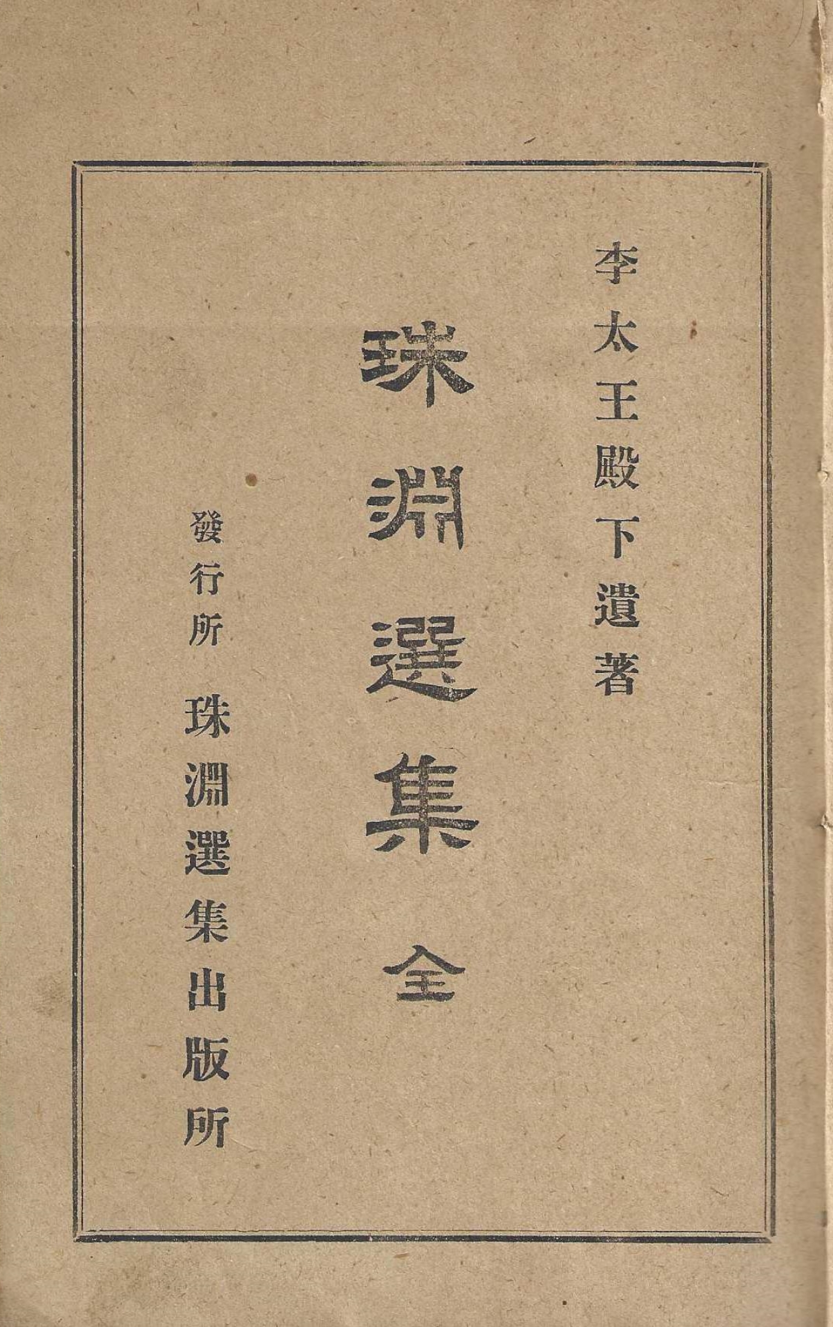서문(序文)을 달기 전 『珠淵選集全』의 제목과 함께 『李太王展下遺著(이태왕전하유저)』라는 글을 적어 왜왕(倭王)이 고종을 '이태왕'으로 낮추어 부른 명칭이 제목에 담겨 있다. 李太(이태)는 고종(高宗)이 세자가 되기 전 이름으로 세자책봉 후에는 희(熙)라 불렀다. 이희(李熙)는 1910년 일본의 왕작위를 받은 최초의 인물로 매국노이다. 그때 오얏꽃 모양의 휘장을 받았다. 이 매국노로 인하여 우리 민족의 정기가 꺾여지는 수모를 당했다.