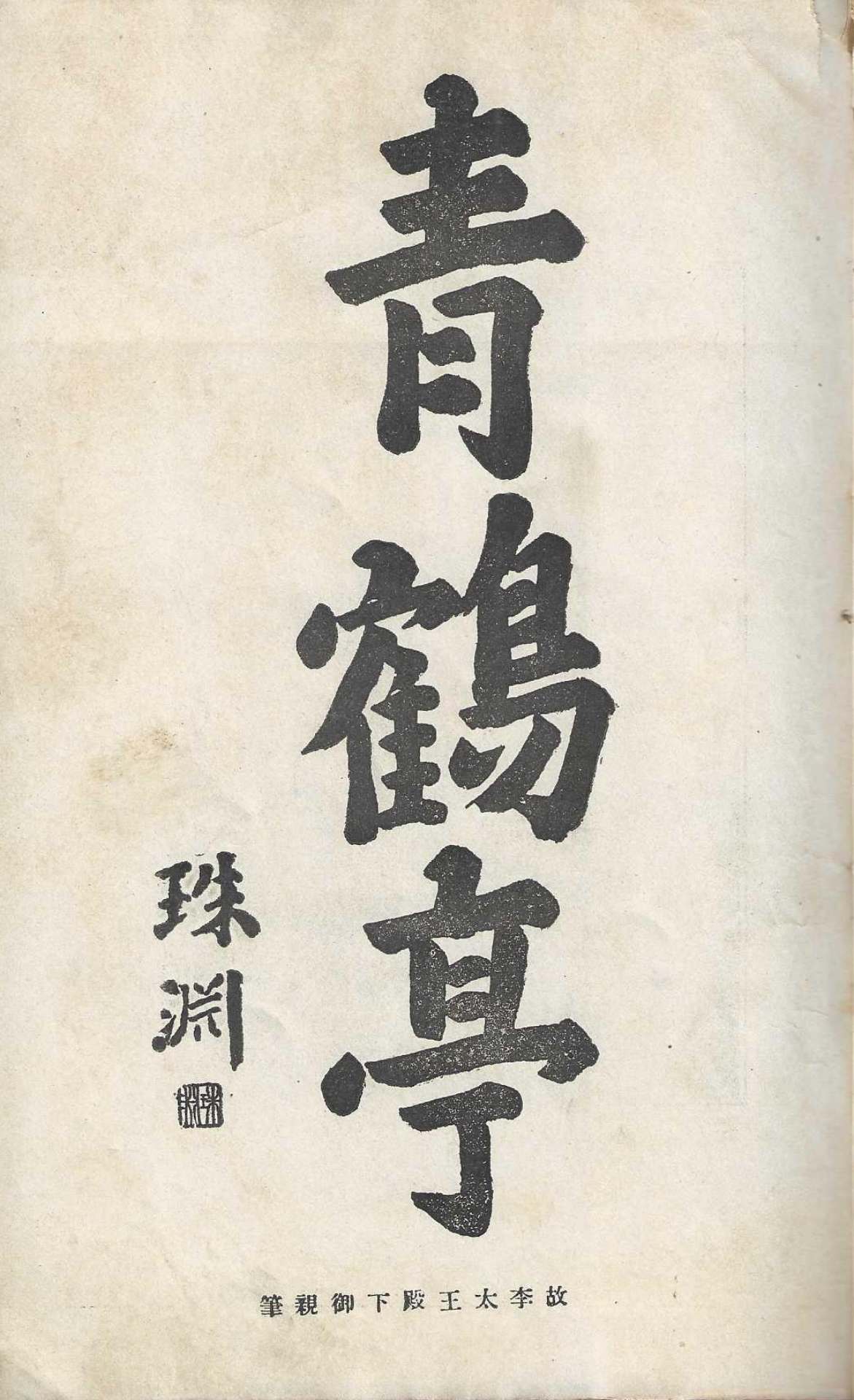 李太(이태)의 친필 글씨 靑鶴亭(청학정)