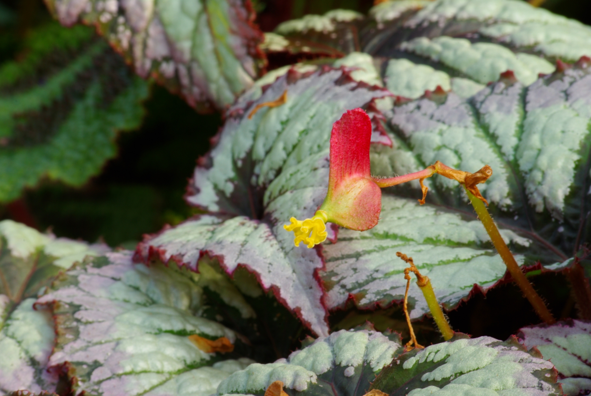 베고니아의 관상부위는 세 가지(꽃, 잎, 반관목성)로 구분하는데, 렉스베고니아는 잎 무늬를 관상하는 식물이다. 잎이 두텁고 얼룩무늬도 있으며 달팽이처럼 말린 것도 있고 종류가 매우 다양하다. 줄기의 온몸에 거친 털이 나 있다. 잎은 대형 달걀 모양으로 길이는 30cm, 폭은 20cm 정도이다. 잎 면에는 품종에 따라 보라색, 빨간색, 은백색, 구릿빛 등 다양한 무늬가 있다. 렉스베고니아는 잎꽂이로 번식이 쉽다. 벤치 아래, 시원하고 습한 그늘에서 가장 이상적인 성장을 한다.