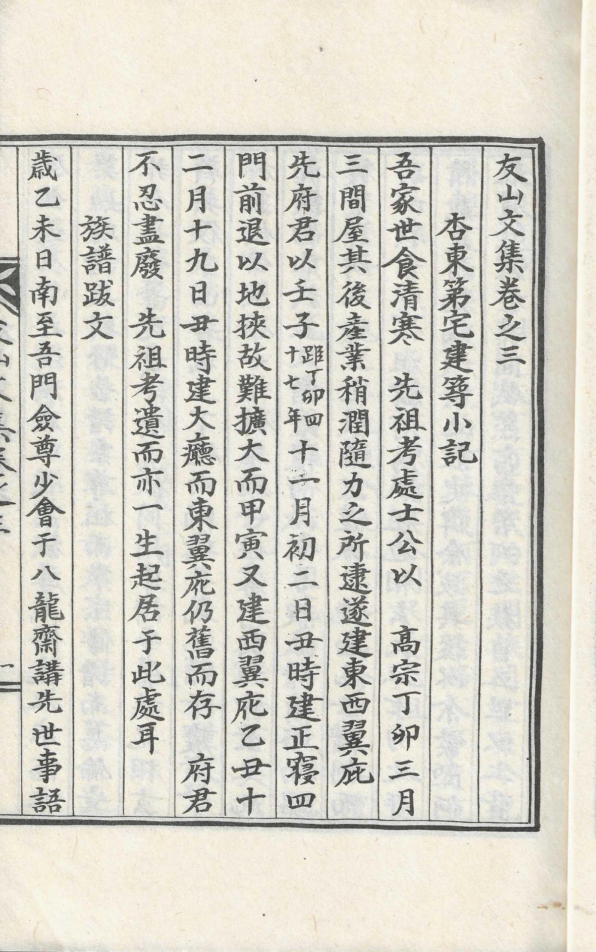 吾家世食淸寒 先祖考處士公以 高宗丁卯三月三間室 其後産業稍潤隨力之所 逮遂建東西翼庇 先府君以壬子(距丁卯四十七年)十一月初二日丑時 建正寢四門前退以地挾故難擴大而甲寅 又建西翼庇乙丑十二月十九日丑時 建大廳而東翼庇仍舊而存 府君不忍盡發 先祖考遺 而亦一生起居于 此處耳