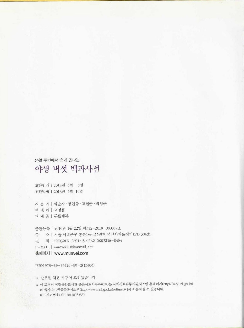 『야생 버섯 백과사전』은 2013년 6월에 푸른행복에서 발간하고 지은이는 석순자·장현유·고철순·박영준 등 4명의 공저이며 가격은 39,600원이다.