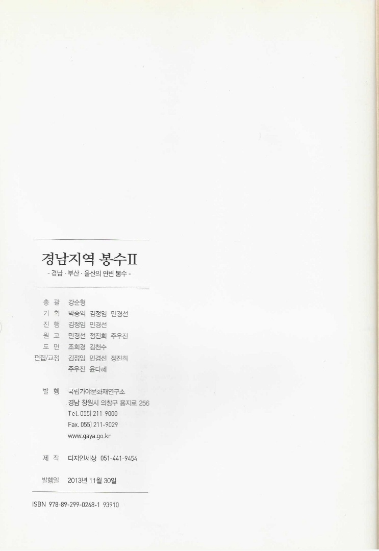 『경남지역 봉수Ⅱ-경남·부산·울산의 연변봉수』는 2013년 11월 「국립가야문화재연구소」가 발행하고 「디자인세상」이 인쇄해 발간한 책으로 강순형이 총괄하고 편집은 김정임, 민경선, 정진희, 주진우, 윤다혜가 했으며 도면은 조희경, 김천수가 제작했다.