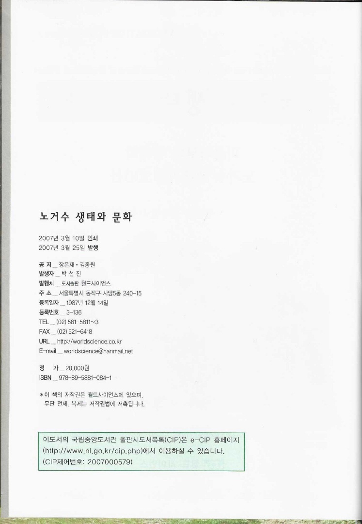 『노거수 생태와 문화』는 2007년 3월 장은재·김종원의 공저로 발행한 책으로 발행처는 도서출판 월드사이언스이다.