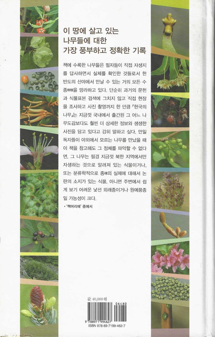 『한국의 나무』는 우리 땅에서 만날 수 있는 650여 종의 나무를 정확하고 상세한 세부 사진과 함께 소개하고 있는 나무도감이다. 필자들이 자생지에서 직접 촬영한 5,000여 장의 생생한 컬러도판을 통하여, 자생수목의 정확한 형태를 확인할 수 있으며 이를 통해 살아 있는 ‘나무 정보’를 얻을 수 있는 책이다.