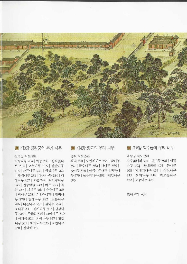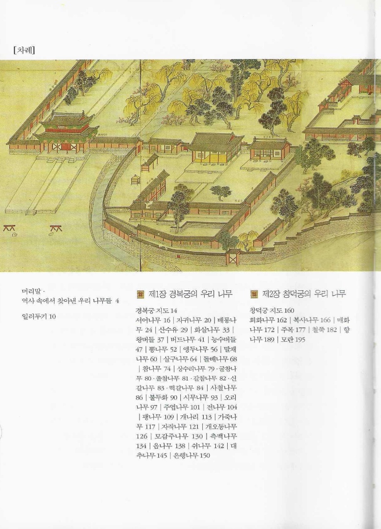 나무의 현재와 과거를 이야기하기에 궁걸만큼 적당한 곳도 없으며, 우리 곁에 볼 수 있는 웬만한 나무들은 모두 궁궐에서 볼 수 있다.