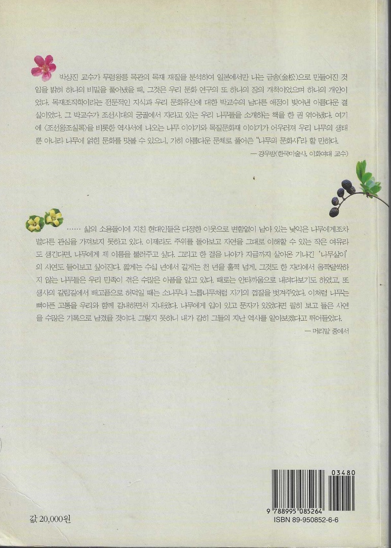 저자인 박상진 교수는 원래 나무의 재질을 연구하는 학자로서, 무령왕릉의 목관이 일본에서나는 금송(金松)이었음을 밝혀내 학계에 큰 반향을 불러일으키기도 하였다. 그러던 그가 나무의 역사적 의의에 관심을 갖게 되면서, 길게는 몇 천 년을 우리 곁에 살아 숨쉬는 나무들의 이야기를 대신 전해주겠다고 나섰다.
