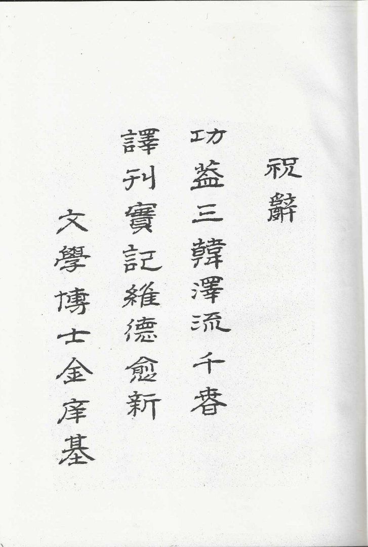 권두에 문학박사 김상기(金庠基), 철학박사 안호상(安浩相), 충현사유적보존위원회장 김재룡(金在龍)의 축사(祝辭)을 붙였고, 진주강씨진주종친회본부의 회장 강석진(姜錫鎭) 외 임원들의 축간사와 진주강씨서울종회의 회장 강성태(姜聲邰) 외 임원들의 축간사와 동아제약주식회사 사장 강중희(姜重熙)의 축간사를 붙이고, 간행을 축하하는 강상욱(姜尙郁) 청와대대변인 근축(謹祝)도 실었다.