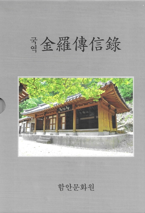 『국역 금라전신록 金羅傳信錄』은 2010년 5월에 이명성과 장성진이 번역하고 대보사가 인쇄해 함안문화원 조훈래 원장이 발행했다. 『金羅傳信錄』은 조선 후기 함안 출신의 유학자 조임도趙任道(1585~1664)가 찬술한 향토 인물 문학 사전으로 고려 말의 이방실(李芳實)을 비롯한 함안 지역이 배출한 인물들의 업적과 문장을 기리기 위해 기록한 것이다. 1639년 상권에 조임도의 서(序)가 있는 것으로 보아 이때 상•하 2책으로 편찬된 것으로 볼 수 있다. 또한 1695년에 조석규(趙錫圭)[1648~1710]가 지은 발문(跋文)과 1743년에 이휘진(李彙晉)이 지은 발문이 있다. 그 후에 1813년 경상남도 함안의 송정서원에서 개간(開刊)했다는 간기로 보아 이때 간행된 것으로 보인다. 이 책과 책판은 합강정合江..