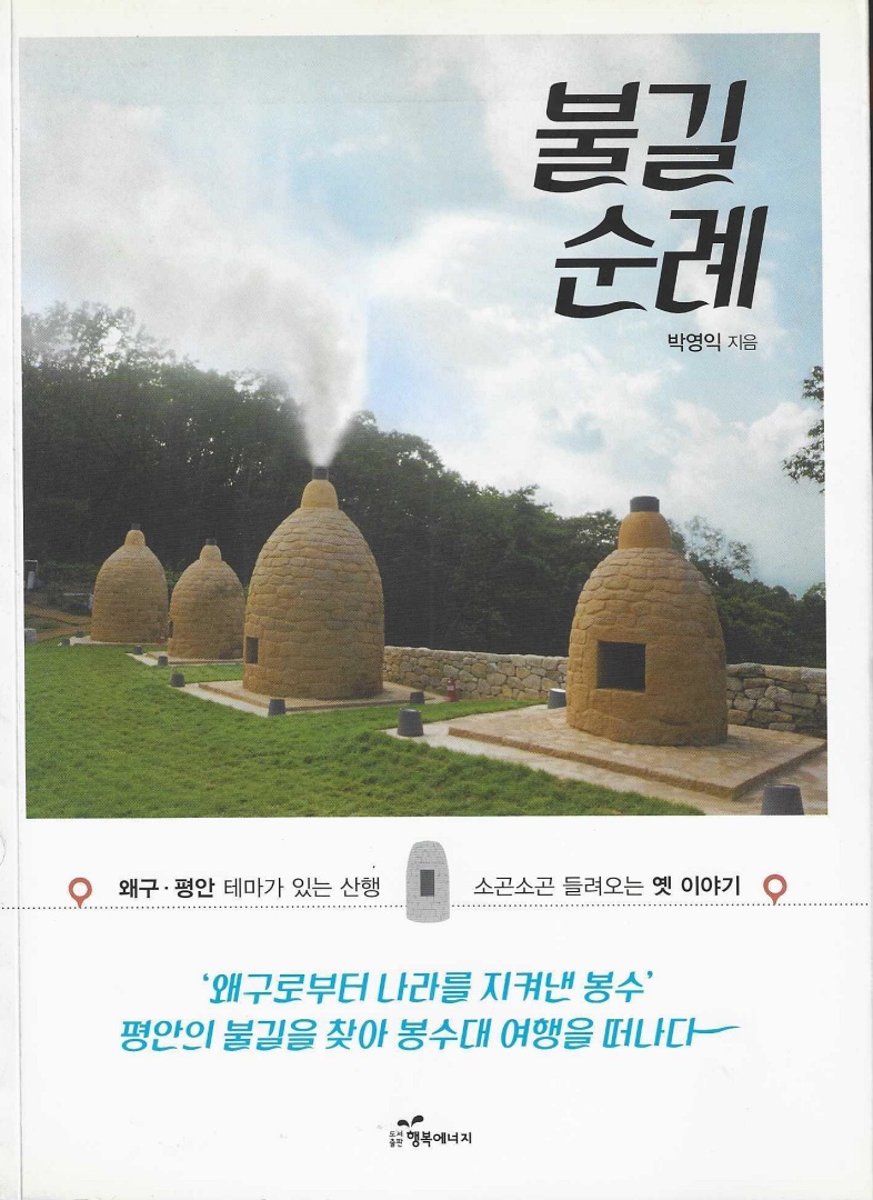 『불길순례』는 조선시대 통신 수단이었던 봉수대(烽燧臺)를 순례자의 심정으로 답사를 한 ‘박영익’ 저자가 2019년 9월에 발행한 이 책은 전자책으로도 등록되어 있으며, 도서출판 행복에너지가 발간하고 가격은 25,000원이다. 우리나라에서 약 120년 전까지 사용하였던 봉수는 과학적으로 잘 갖추어진 통신 방법이다. 봉수대에서는 낮에는 연기를 이용하고, 밤에는 불빛을 이용하여 정보를 먼 곳까지 신속하게 전달하였다. 신호가 전달하는 내용은 봉수대의 굴뚝에서 올리는 연기나 불꽃의 수에 따라 달랐다.이렇게 연기나 불빛을 이용하여 만든 신호는 인근의 봉수대에 차례대로 전달되어 한양(현재의 서울)까지 전달되었다. 봉수대는 전국에 600개 이상이다. 높은 산의 정상에 세워졌던 봉수대 자리는 지금의 전파 중계소가 있는 ..